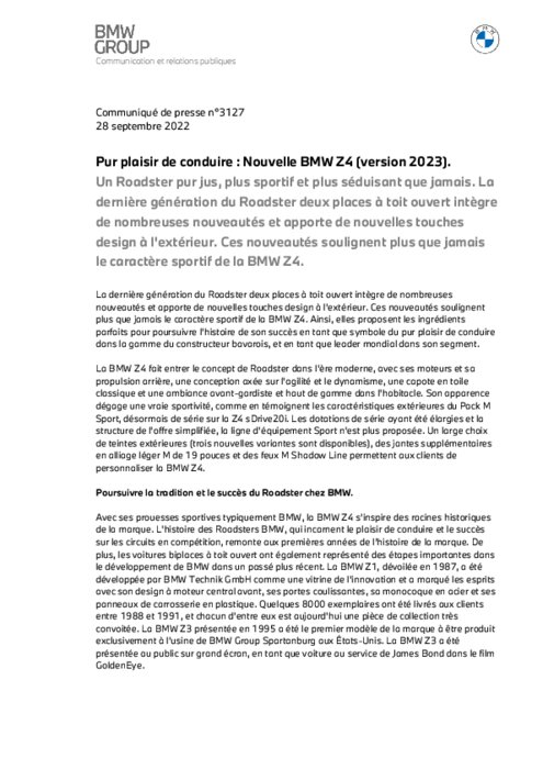 BMW présente la version 2023 de la BMW Z4