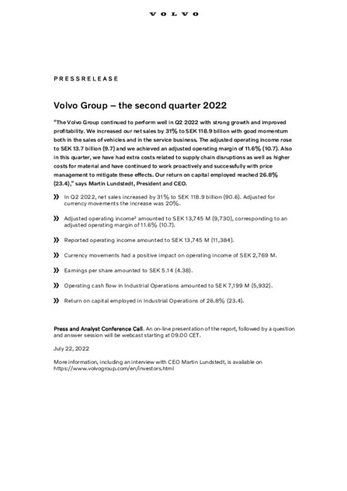 "Au cours de ce trimestre, nous avons eu des coûts supplémentaires liés aux perturbations de la chaîne d'approvisionnement et des coûts en matériaux plus élevés", a déclaré Martin Lundstedt, PDG de Volvo, dans un commentaire.