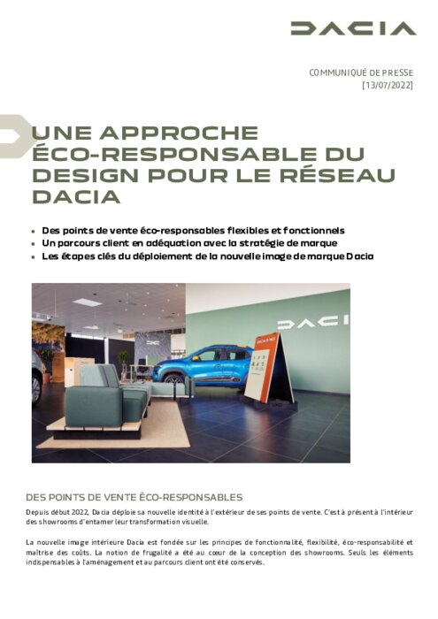 Des points de vente éco-responsables flexibles et fonctionnels. Un parcours client en adéquation avec la stratégie de marque. Les étapes clés du déploiement de la nouvelle image de marque Dacia
