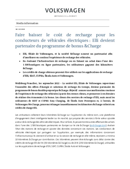 Elli, filiale de Volkswagen devient partenaire du programme de bonus &Charge