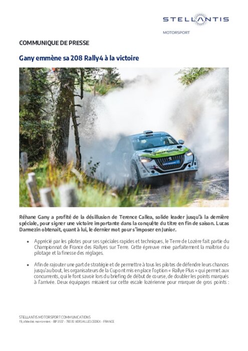 Réhane Gany a profité de la désillusion de Terence Callea, solide leader jusqu’à la dernière spéciale, pour signer une victoire importante dans la conquête du titre en fin de saison. Lucas Darmezin obtenait, quant à lui, le dernier mot pour s’imposer en Junior.