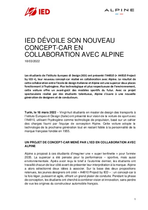 Les étudiants de l’Istituto Europeo di Design (IED) ont présenté l’A4810 (« A4810 Project by IED »), leur nouveau concept-car réalisé en collaboration avec Alpine. Le résultat de cette collaboration entre l’école de design italienne et Alpine est une supercar deux places fonctionnant à l’hydrogène. Plus technologique et plus respectueuse de l’environnement, cette voiture offre un avant-goût des modèles sportifs du futur...