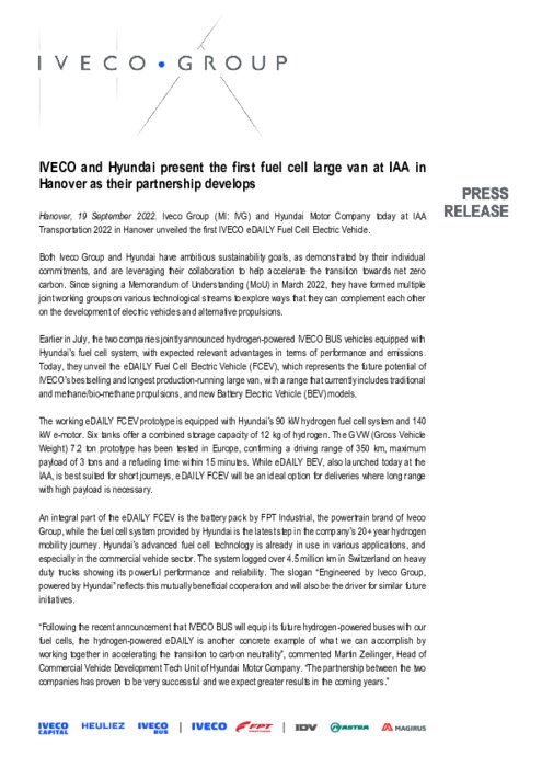 IVECO et Hyundai présentent le 1er grand fourgon à pile à combustible au salon IAA