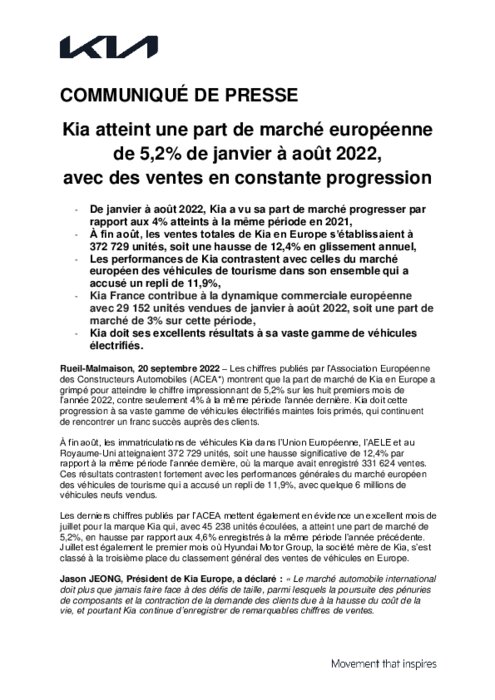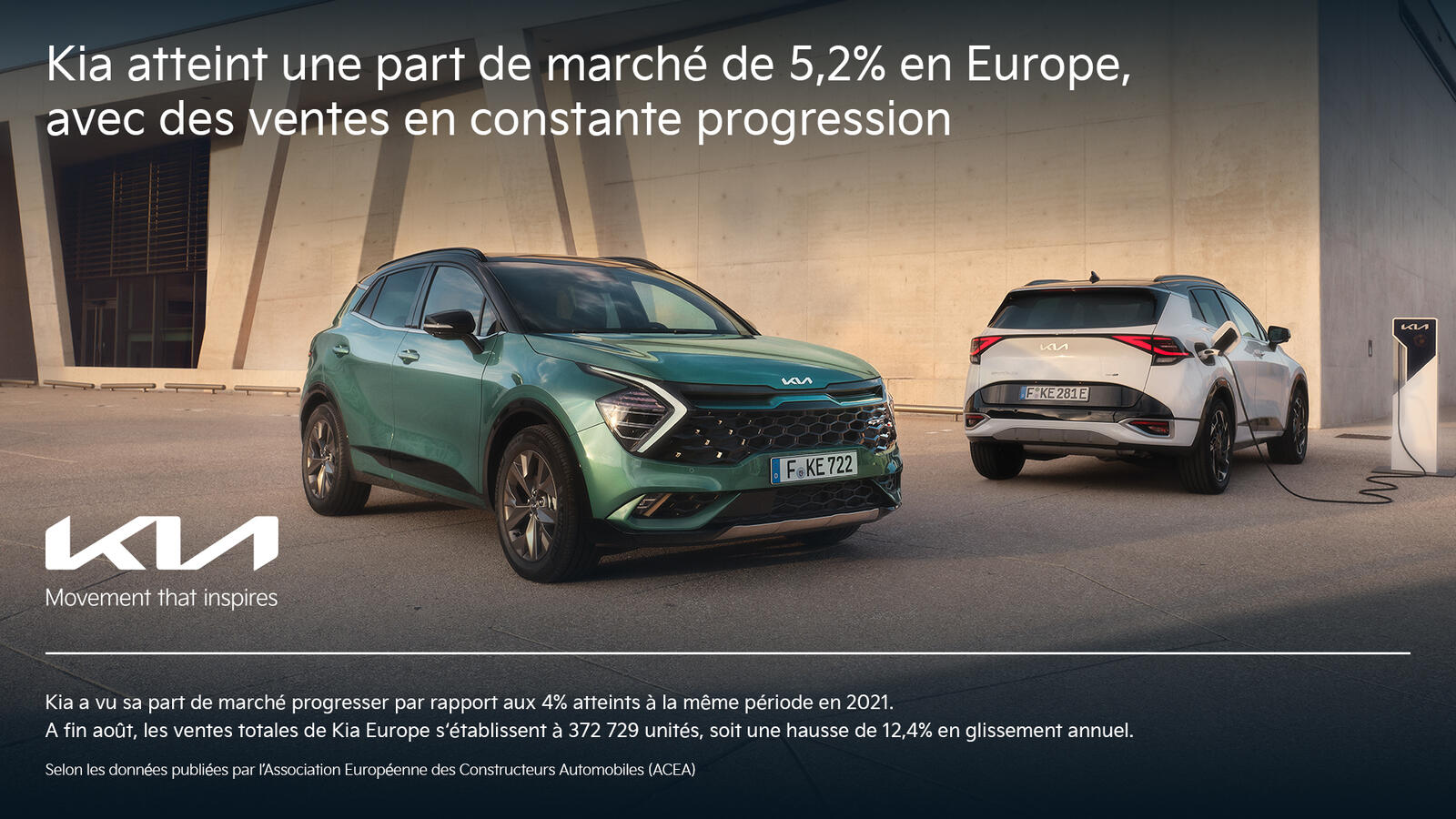 Kia atteint une part de marché européenne de 5,2% de janvier à août 2022