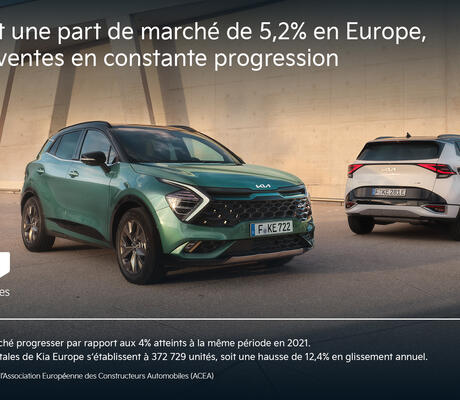 Les chiffres publiés par l’Association Européenne des Constructeurs Automobiles (ACEA*) montrent que la part de marché de Kia en Europe a grimpé pour atteindre le chiffre impressionnant de 5,2% sur les huit premiers mois de l’année 2022, contre seulement 4% à la même période l'année dernière. Kia doit cette progression à sa vaste gamme de véhicules électrifiés maintes fois primés, qui continuent de rencontrer un franc succès auprès des clients.