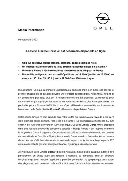 La Série Limitée Corsa 40 est désormais disponible en ligne