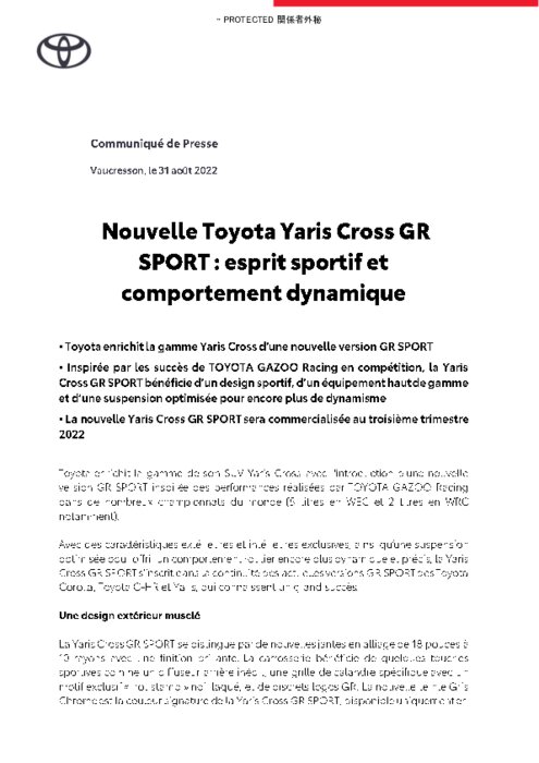 Toyota enrichit la gamme Yaris Cross d’une nouvelle version GR SPORT. Inspirée par les succès de TOYOTA GAZOO Racing en compétition, la Yaris Cross GR SPORT bénéficie d’un design sportif, d’un équipement haut de gamme et d’une suspension optimisée pour encore plus de dynamisme. La nouvelle Yaris Cross GR SPORT sera commercialisée au troisième trimestre 2022.