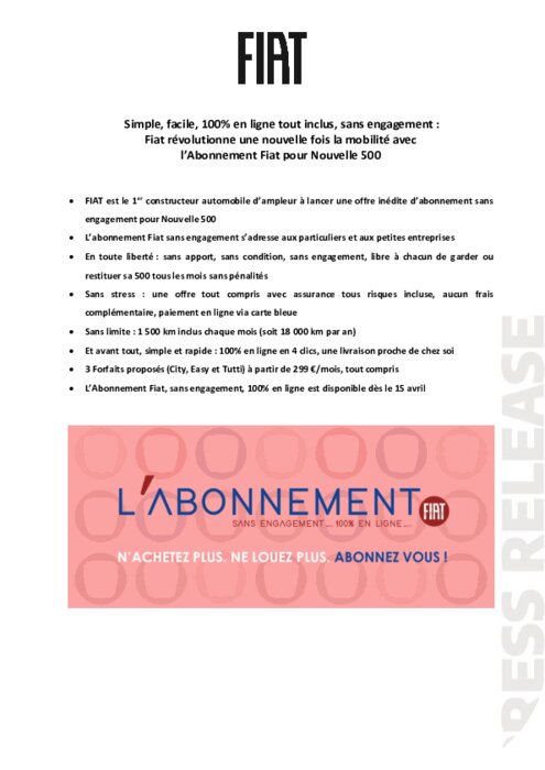 L’Abonnement Fiat pour Nouvelle 500 révolutionne la mobilité