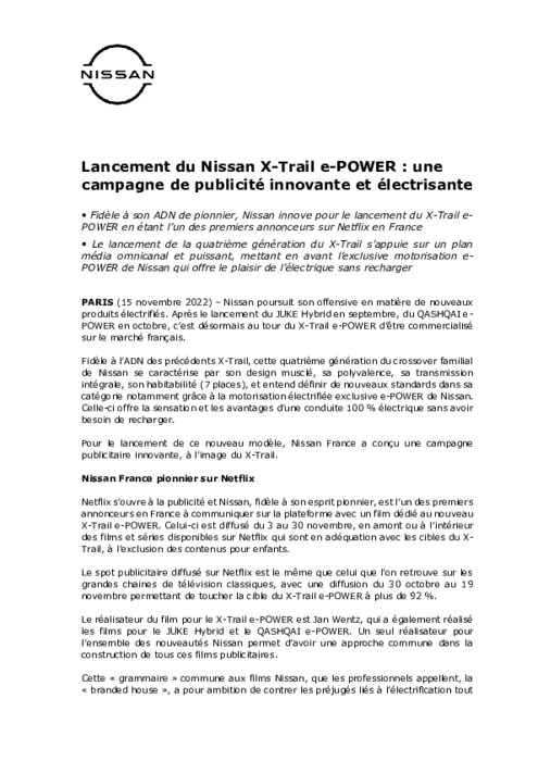 Lancement du Nissan X-Trail e-POWER : une campagne de publicité innovante et électrisante (+vidéo)