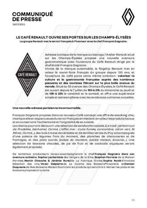 Adresse iconique de la marque au losange, l’Atelier Renault situé sur les Champs-Elysées propose une nouvelle aventure gastronomique avec l’ouverture du Café Renault dirigé par le chef étoilé François Gagnaire.