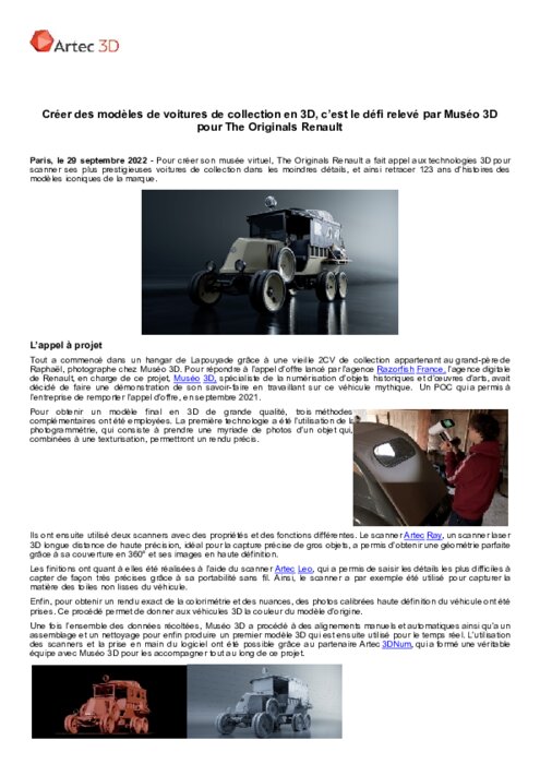 Le musée virtuel de The Originals Renault prend vie grâce à Muséo 3D