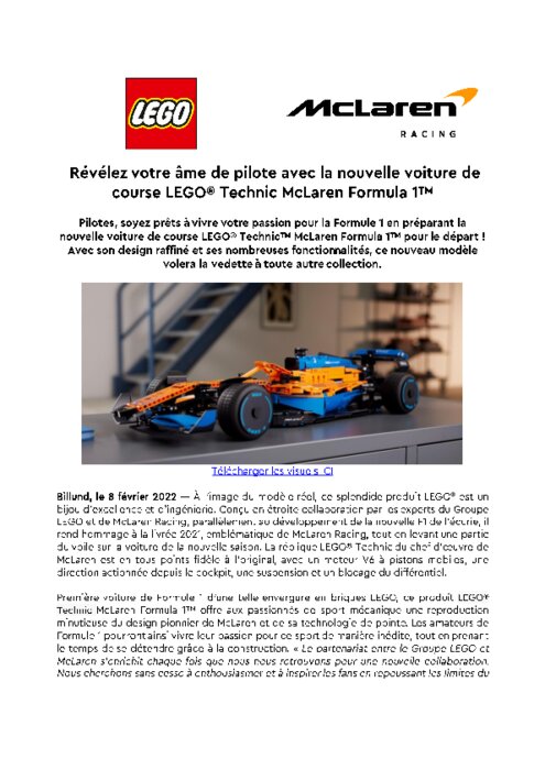 Pilotes, soyez prêts à vivre votre passion pour la Formule 1 en préparant la nouvelle voiture de course LEGO Technic McLaren Formula 1 pour le départ ! Avec son design raffiné et ses nombreuses fonctionnalités, ce nouveau modèle volera la vedette à toute autre collection.