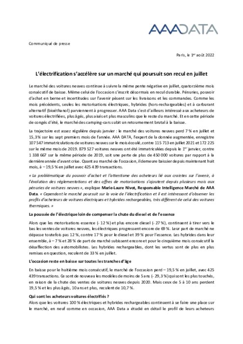 Le marché des voitures neuves continue à suivre la même pente négative en juillet, quatorzième mois consécutif de baisse. Même celui de l’occasion s’inscrit désormais en recul durable. Pénuries, pouvoir