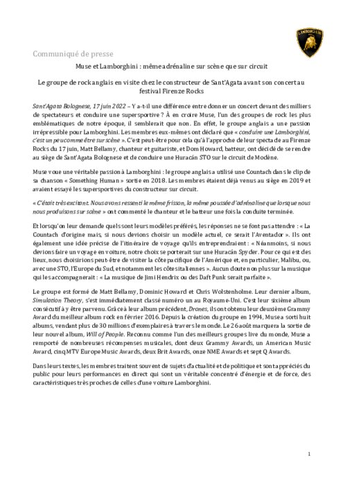 Y a-t-il une différence entre donner un concert devant des milliers de spectateurs et conduire une supersportive ? À en croire Muse, l’un des groupes de rock les plus emblématiques de notre époque, il semblerait que non. En effet, le groupe anglais a une passion irrépressible pour Lamborghini. Les membres eux-mêmes ont déclaré que « conduire une Lamborghini, c’est un peu comme être sur scène ».
