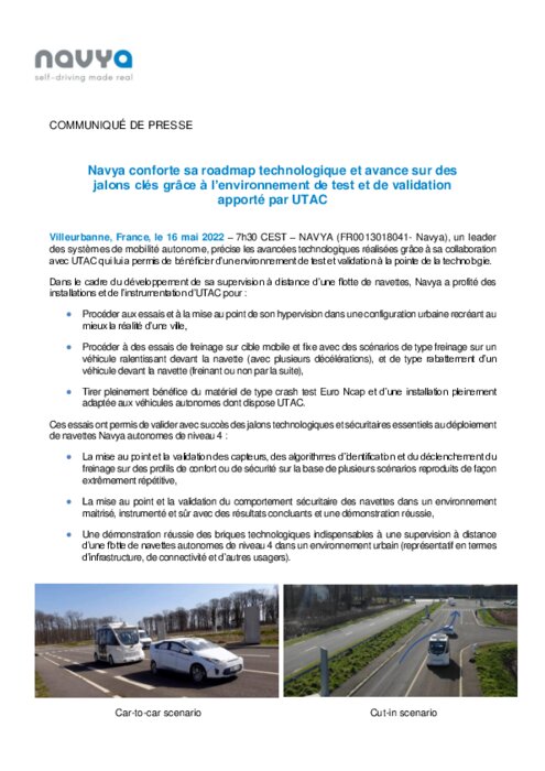 Navya conforte sa roadmap technologique et collabore avec UTAC