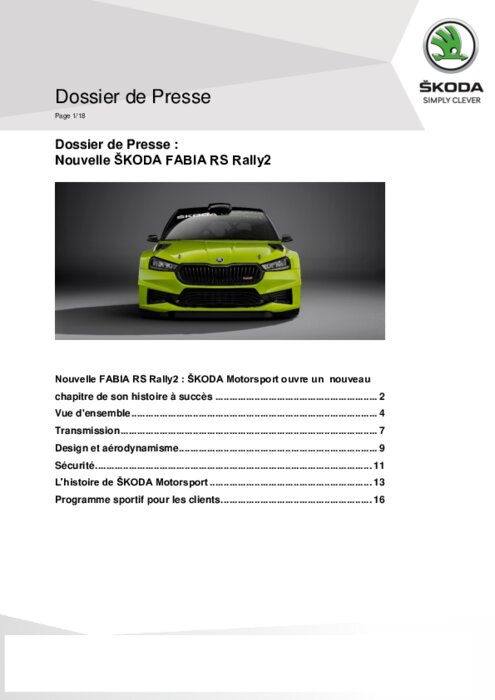 Le nouveau véhicule de rallye est basé sur la FABIA de quatrième génération. Nouveau moteur et technologies inédites pour l’héritière de la FABIA Rally2 evo. Une série de tests approfondis a été réalisée sur l'asphalte, la terre et la neige.