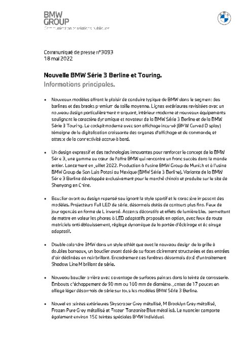 Avec son design repensé, son habitacle de qualité premium largement modernisé, la digitalisation croissante de ses organes d’affichage et de commande, et sa dotation en équipements de dernière génération, la nouvelle version de la BMW Série 3 s’inscrit dans la continuité de ses devancières, qui ont su séduire un large public dans le monde entier.