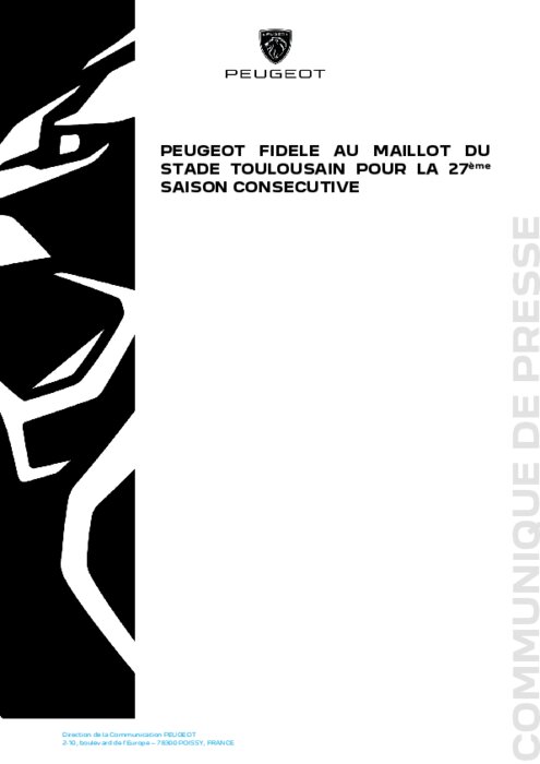 Le Stade Toulousain vient de présenter le nouveau maillot de ses joueurs pour la saison 2022-2023. Un maillot hommage à celui de la saison 1996-1997 triomphante en championnat. Points communs : un design tout de rouge et de noir… et la présence de PEUGEOT, Partenaire Majeur du club depuis 26 ans !