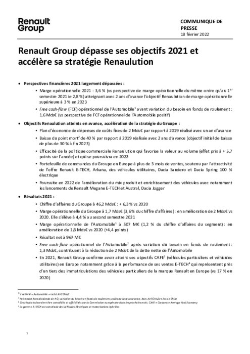 Le groupe Renault est revenu dans le vert en 2021 avec un résultat net de près d'un milliard d'euros, en faisant des économies et en augmentant ses prix de vente moyens.
