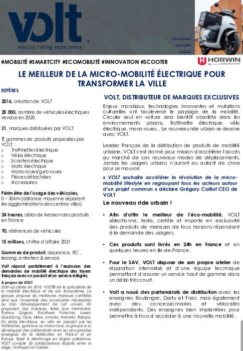 Enjeux mondiaux, technologies innovantes et mutations culturelles ont bouleversé le paysage de la mobilité. Circuler seul en voiture sera bientôt obsolète dans les environnements urbains. Trottinette électrique, vélo électrique, mono roues... Le nouveau ride urbain se dessine avec VOLT.