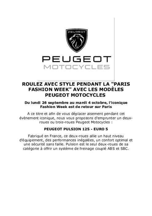 Roulez avec la "Paris Fashion Week" avec les modèles Peugeot Motocycles