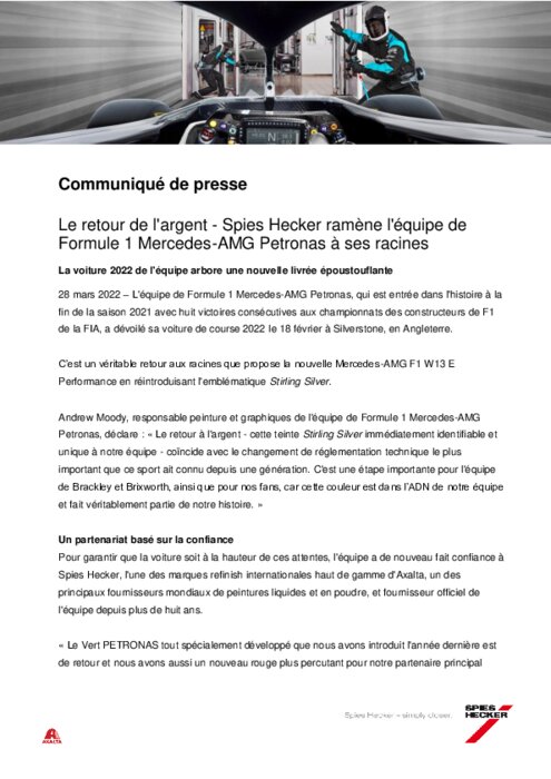 L'équipe de Formule 1 Mercedes-AMG Petronas, qui est entrée dans l'histoire à la fin de la saison 2021 avec huit victoires consécutives aux championnats des constructeurs de F1 de la FIA, a dévoilé sa voiture de course 2022 le 18 février à Silverstone, en Angleterre. C’est un véritable retour aux racines que propose la nouvelle Mercedes-AMG F1 W13 E Performance en réintroduisant l'emblématique Stirling Silver.