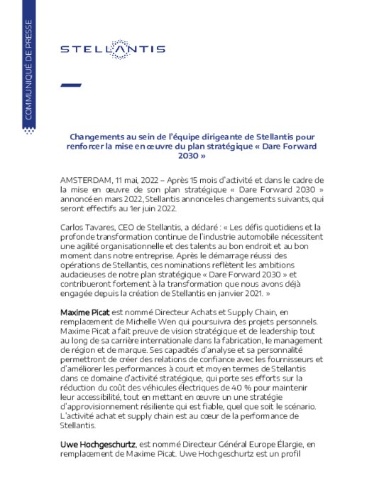 En remplacement de M. Picat, Uwe Hochgeschurtz, ex-patron de Renault Allemagne récemment nommé à la tête d'Opel Vauxhall, prend la tête de la région "Europe élargie", soit un des deux principaux marchés du groupe avec l'Amérique du Nord. Son objectif pour 2030 est de doubler Volkswagen en Europe, "avec une rentabilité à deux chiffres".