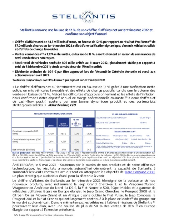 Stellantis a pourtant enregistré une baisse de 12% du nombre de ses ventes sur un an, à près de 1,4 million de véhicules sur le trimestre. Cette baisse globale des ventes est essentiellement due à des "commandes de semi-conducteurs non reçues", phénomène qui perturbe l'industrie automobile depuis le printemps 2021.