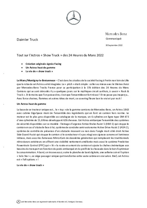 Tout sur l’Actros « Show Truck » des 24 Heures du Mans 2022