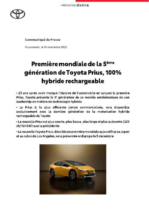 D'un design très sportif, la nouvelle Prius revendique une autonomie en conduite électrique environ 50% plus élevée que sa génération précédente. Elle sera lancée cet hiver dans le monde entier, et dans une version hybride rechargeable au printemps 2023.