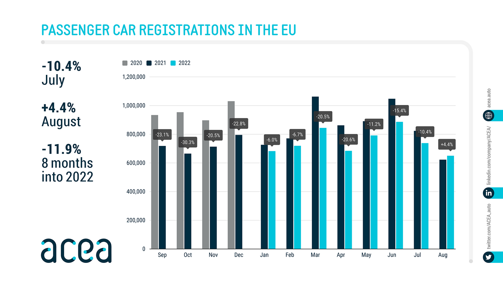 Avec près de six millions de voitures vendues depuis le début de l'année 2022, le marché est en recul de 11,9%.