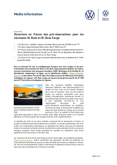 Volkswagen Utilitaires : ouverture des pré-réservations pour les nouveaux ID. Buzz et ID. Buzz Cargo