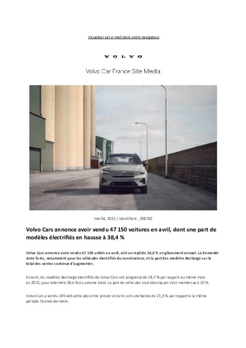 Volvo Cars a vendu 47 150 voitures en avril (modèles électriques +38,4 %)