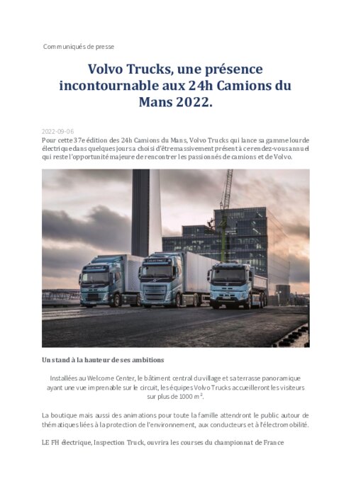 Volvo Trucks : une présence incontournable aux 24h Camions du Mans 2022.